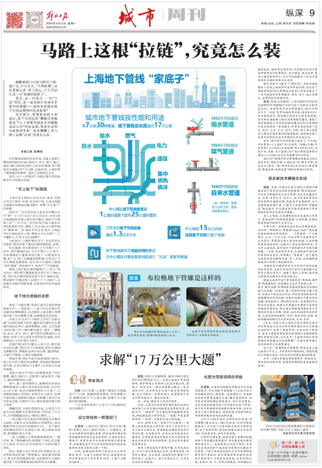 日前,《解放日?qǐng)?bào)》記者訪談了上海市政總院總工程師(結(jié)構(gòu))王恒棟,就城市地下管線建設(shè)和管理方面作深入探討,文章刊發(fā)于8月5日出版的《解放日?qǐng)?bào)》縱深專欄,原標(biāo)題為《馬路上這根“拉鏈”,究竟怎么裝》。
