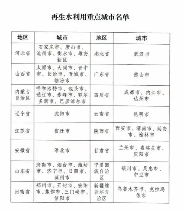 全國50個(gè)再生水利用重點(diǎn)城市名單公布