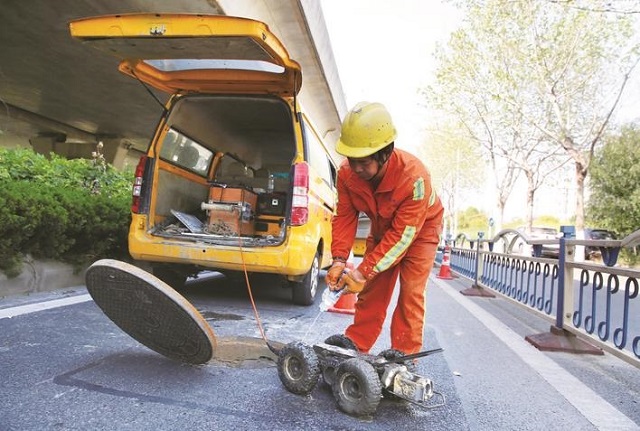 管道疏通工作結束后,一臺外觀酷似玩具汽車的CCTV檢測機器人被放入雨水管道,機器人沿管道爬行的同時,管道內部的實時高清畫面被傳輸到一旁的監視器上。技術人員對管道接口處有無裂縫,管內淤積以及破損、滲漏、錯位等結構病害進行排查判斷,制訂下一步的修復計劃。“我們已經對全市500余公里的雨水管網進行了清淤和檢測,修復病害478處,修復管網長度達1520米,”張哲夫說,“采用非開挖修復的方式,減少了對市民出行的干擾,更是大大降低了維修成本,提升了地下管理的‘軟實力’。”