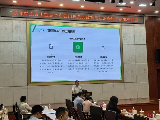 今年是綠水青山就是金山銀山理念提出20周年。近日,由西南政法大學、生態(tài)環(huán)境部環(huán)境與經(jīng)濟政策研究中心主辦的“落實綠水青山就是金山銀山理念的政策與法治保障”研究交流會在重慶市舉行。會上,廣東省東莞市生態(tài)環(huán)境局黨組成員、副局長王鑫以《小切口、小快靈:東莞市零散工業(yè)廢水管理的立法創(chuàng)新》為題作主題發(fā)言,向與會專家學者分享東莞市零散工業(yè)廢水管理的法治經(jīng)驗。