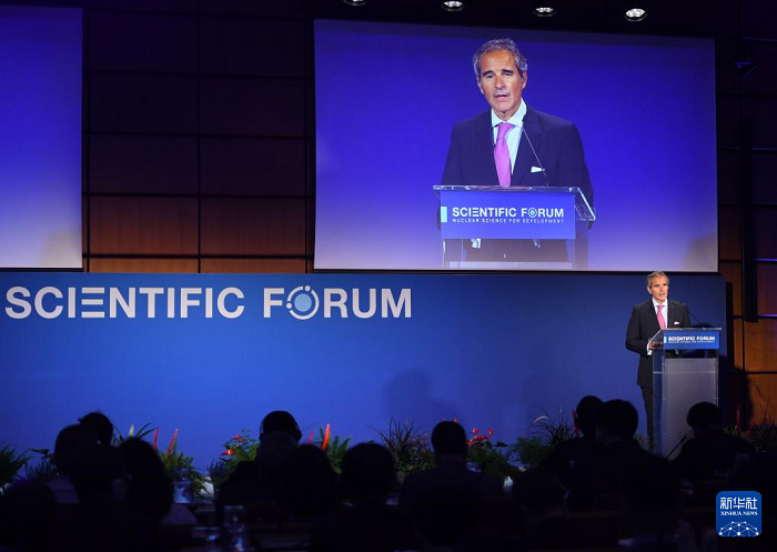 9月16日,在奧地利維也納,國際原子能機(jī)構(gòu)總干事格羅西在“原子用于水資源”科學(xué)論壇上致辭。新華社記者賀燦鈴攝